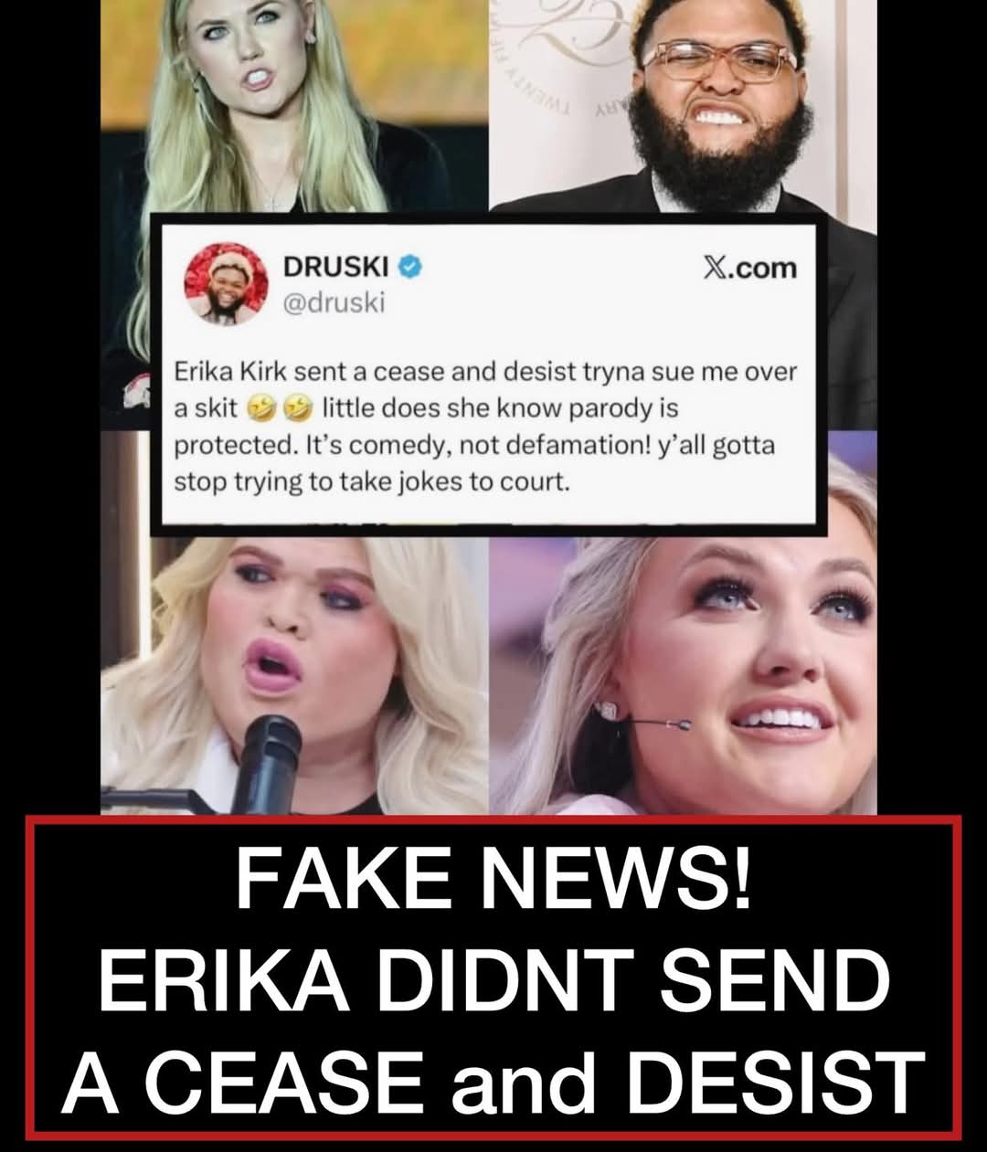 FAKE: Erika Kirk did NOT send a cease and desist over the viral parody mocking her.